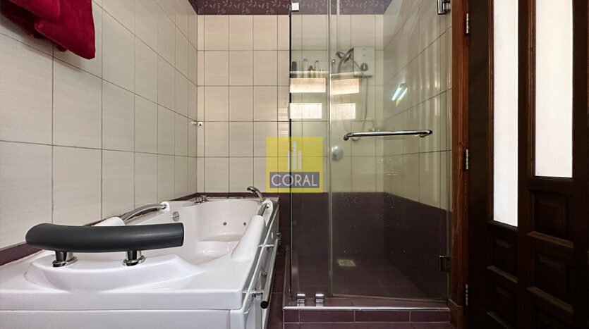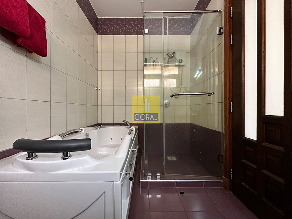 - Master bedroom with a tub and shower.