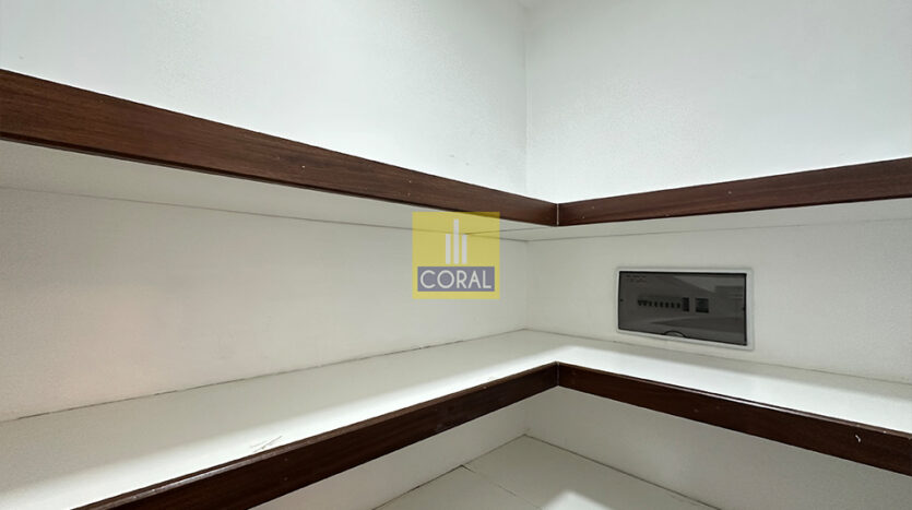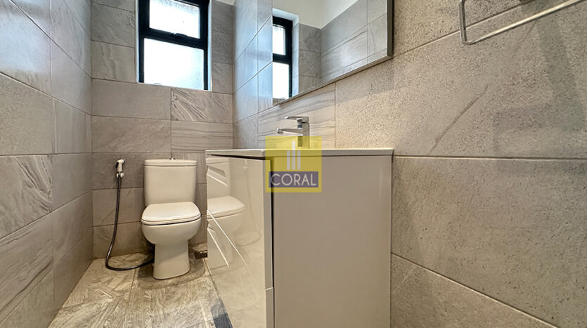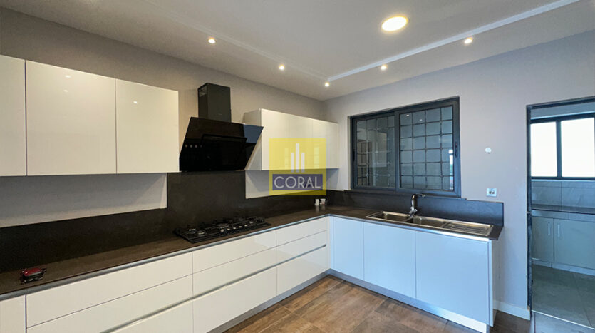 The owners have thoughtfully designed the interiors, creating a warm and elegant living space. Features include stylish gypsum ceilings, bright white kitchen cabinetry, laminated flooring in the living room and bedrooms, and customized wardrobes that provide excellent storage.